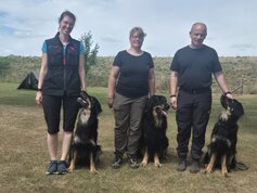 | 26.07.2025 | Nur eine Woche später besteht Andreas mit Dream bei der SV OG Bischofsheim unter Leistungsrichter Jürgen Klein (SV) seine 2te FCI-IBGH3 Prüfung mit 85 Punkte gut. Somit hat er alle Vorrausetzungen für die FCI-IBGH3 Deutsche Meisterschaften des RZV-Hovawarte erfüllt ![]() | |