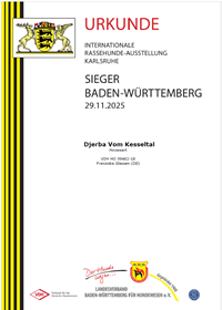 | 19.12.2025 | Kesseltal on Tour Am 29.11.2025 starteten Djerba vom Kesseltal und Eludy vom Kesseltal auf der IRAS in Karlsruhe. Djerba vom Kesseltal wurde in der GHKL Hündinnen von der Formwertrichterin Beatrice Holder mit einem tollen V1 bewertet und wurde Baden-Württemberg Sieger und Alpensieger !!!!!!!!! ![]() ![]() ![]() ![]() Eludy vom Kesseltal erlief sich in der Offenen Klasse Hündinnen ein SG2. Herzlichen Glückwunsch Euch beiden !!!!!!!! | |